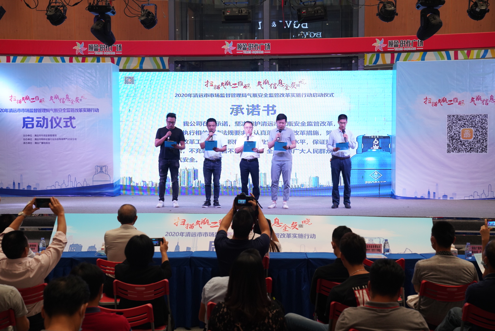啟動(dòng)儀式上,清遠(yuǎn)中燃百江普華能源有限公司、清遠(yuǎn)市清新區(qū)百富洋石油化工有限公司、英德市煤氣供應(yīng)公司煤氣儲(chǔ)存站、連州市唐家能源有限公司、佛岡合駿燃?xì)庥邢薰镜绕髽I(yè)作出承諾:“堅(jiān)決擁護(hù)清遠(yuǎn)市氣瓶安全監(jiān)管改革,嚴(yán)格執(zhí)行相關(guān)法律法規(guī)要求,認(rèn)真落實(shí)各項(xiàng)改革措施,努力推動(dòng)改革工作進(jìn)程,積極提高企業(yè)安全管理水平,主動(dòng)落實(shí)安全生產(chǎn)主體責(zé)任,保證規(guī)范經(jīng)營,不充裝不銷售不合格氣瓶,全力保障廣大人民群眾的用氣安全。”