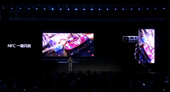 通過NFC一碰閃投功能,手機(jī)小屏幕內(nèi)容便立馬浮現(xiàn)在大屏幕上。