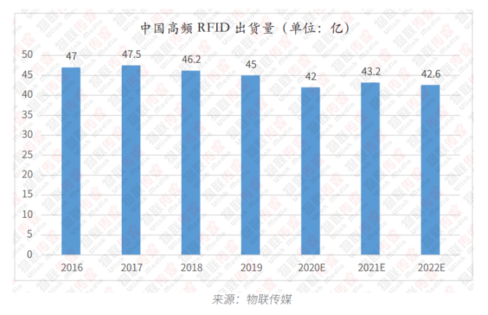 4.因卡類應(yīng)用基數(shù)比較大,早些年高頻RFID的整體市場會呈下降趨勢,但隨著標簽類應(yīng)用占比逐漸增加,高頻市場的出貨量下降幅度會越來越小,甚至會有一定的增長。具體要看后續(xù)標簽市場的發(fā)展。