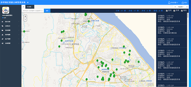 圖為沙坪壩區智能古樹管理系統顯示界面
